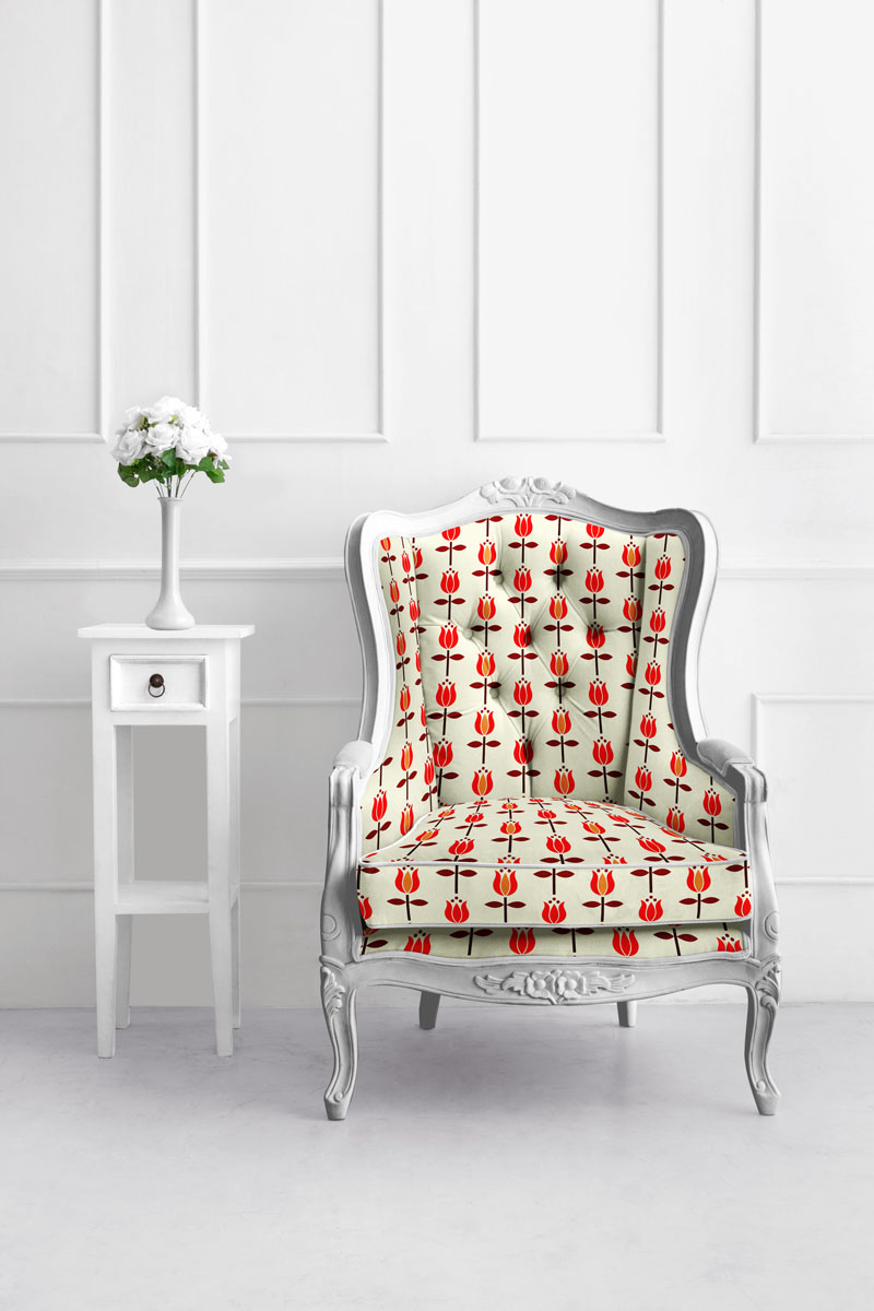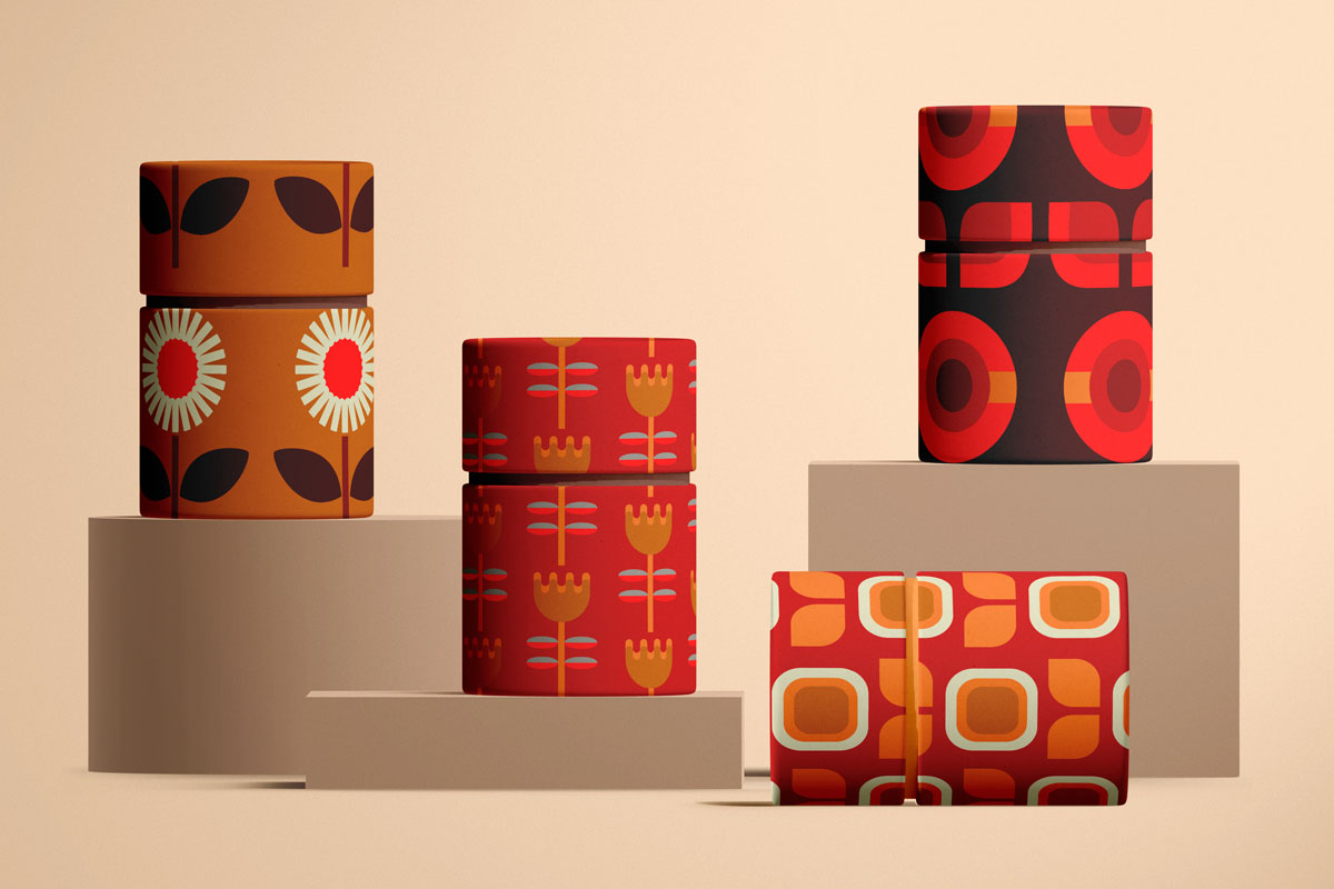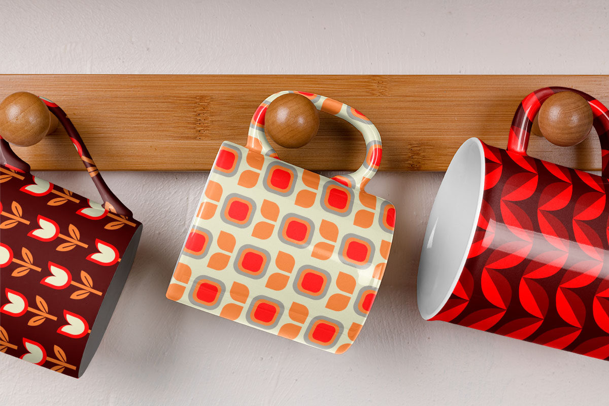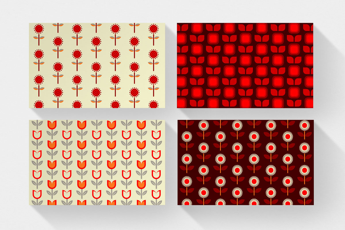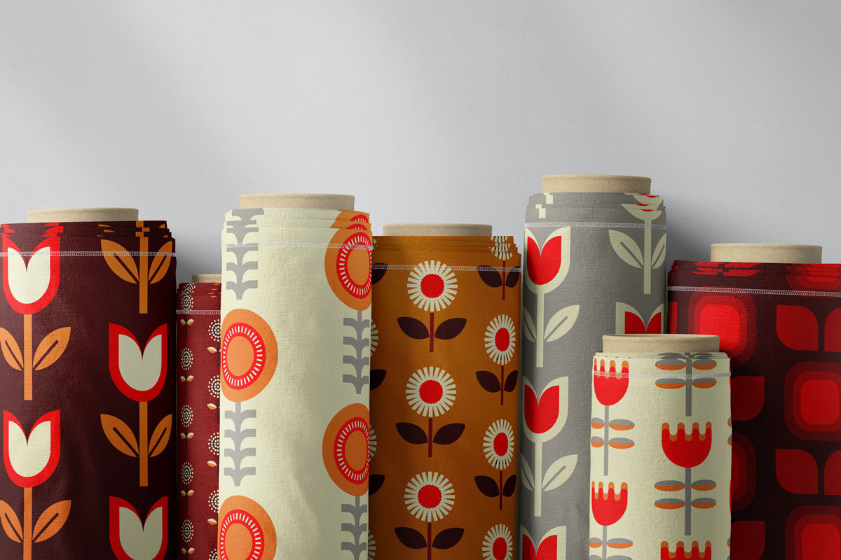 At the bottom of this page you will see a sample of the pattern set in the Finnish Flower Autumn color scheme and you will find a slideshow with mockups of several products: